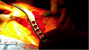 Intra-operative x-ray helps check mechanical alignment and modular features allow for last minute fine tuning. Neck length adjusted. Stem fit like a custom implant. 2 prox x 10 mm. |