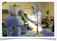| McTighe, Vaughn and Tkach observe Dr. Ian Woodgate performing a neck sparing THA at St. Vincent’s Hospital in Sydney Australia. |
