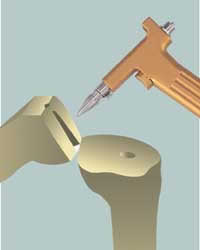 Physicians review a new approach using a CO2 lavage system for preparation of bony surfaces for cemented total joint arthroplasty.